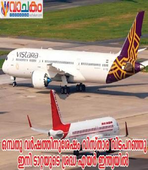 പത്തു വർഷത്തെ സർവീസിനു ശേഷം, വിസ്താര ചരിത്രമായി തീർന്നിരിക്കുന്നു. 2024 നവംബർ 12ന് പുലർച്ചെ അവസാന സർവീസ് നടത്തി വിസ്താര വ്യോമയാന രംഗത്തുനിന്ന് പിൻവാങ്ങി. എയർ ഇന്ത്യ വിസ്താര ലയനം പൂർത്തിയായതോടെ എയർ ഇന്ത്യ ബ്രാൻഡിൽ പുതിയ സർവീസുകൾ തുടങ്ങി. വിസ്താര അരങ്ങൊഴിഞ്ഞതോടെ രാജ്യത്തെ ഏക ഫുൾ സർവീസ് കാരിയർ ആയി എയർ ഇന്ത്യ മാറിയിരിക്കുന്നു. എന്നാൽ ബ്രാൻഡിംഗിന് അപ്പുറം, ലയിപ്പിച്ച സ്ഥാപനത്തിന് പ്രവർത്തനപരമായ ഏറെ വെല്ലുവിളികൾ നേരിടേണ്ടിവരും എന്നതുറപ്പ്.