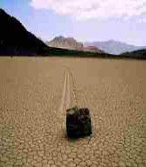 ജലം ഇല്ലാതെ വരണ്ടുണങ്ങി കിടക്കുന്ന തടാകത്തിലൂടെ തനിയെ നിരങ്ങി നീങ്ങി പോകുന്ന വലിയ പാറ കല്ലുകള്. കേള്ക്കുമ്പോള് തന്നെ അത്ഭുതം തോന്നും. അതേ അങ്ങനെയൊരു പ്രതിഭാസം അമേരിക്കയിലെ ഡെത്ത് വാലി നാഷനല് പാര്ക്കില് ചെന്നാല് കാണാം. അര കിലോമീറ്ററോളം ദൂരം സ്വയം നീങ്ങി എത്തിയ വഴിത്താരയും സൃഷ്ടിച്ചാണ് പാറക്കല്ലുകളുടെ സഞ്ചാരം. 300കിലോയില് അധികം ഭാരമുള്ള പാറക്കല്ലുകള് വരെ ഇവിടെ ഇങ്ങനെ തനിയെ സഞ്ചരിക്കുന്നുണ്ട്. ഇതിനെ ചുറ്റിപ്പറ്റി പല കഥകളും പ്രചരിക്കുകയും ചെയ്തിരുന്നു.