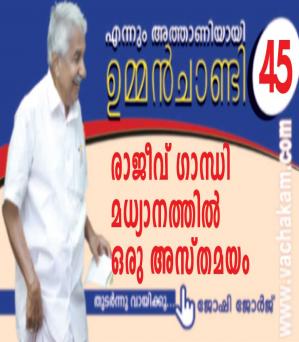 മരവിച്ച മനസ്സുമായി ഉമ്മൻചാണ്ടി എത്ര നേരമിരുന്നുവെന്ന് അറിയില്ല. നെഞ്ച് പിടയുന്ന ആ മരണവാർത്ത എത്രപെട്ടെന്നാണ് തന്നെ ശൂന്യതയുടെ ആഴങ്ങളിലേക്ക് വലിച്ചിട്ടത്. മദ്രാസിൽ നിന്നും 45കി.മി. ദൂരത്ത് ശ്രീപെരുംപുത്തൂരിൽ തെരഞ്ഞെടുപ്പു പ്രചാരണത്തിനെത്തിയ രാജിവ് ഗാന്ധി ചാവേർ ആക്രമണത്തിൽ രക്തസാക്ഷിയായിരിക്കുന്നു. രാജ്യം ഉറ്റുനോക്കിയിരുന്ന ഒരു നേതാവിന്റെ അസ്തമയം..! പ്രതീക്ഷയുടെ വെള്ളിനക്ഷത്രം പൊലിഞ്ഞിരിക്കുന്നു.