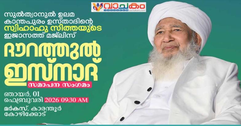 നാളെ(ഞായർ) രാവിലെ 9:30 മുതൽ 12:30 വരെ നടക്കുന്ന ദർസിൽ പങ്കെടുക്കുന്നതിനും കൂടുതൽ വിവരങ്ങൾക്കും +91 9846311199.