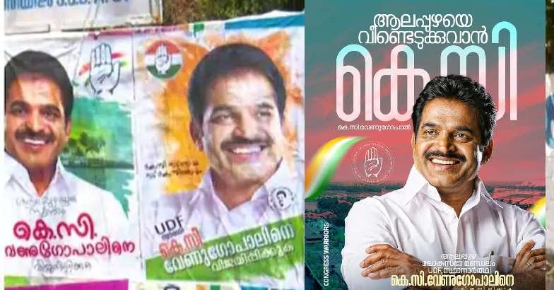 മാരാരിക്കുളത്താണ് പോസ്റ്ററുകൾ പ്രത്യക്ഷപ്പെട്ടത്. 'കെ സി നാടിനൊപ്പം നാട് കെസിക്കൊപ്പമെന്നാണ് പോസ്റ്റര്. ഔദ്യോഗിക പ്രഖ്യാപനത്തിനും മുന്നേ കെസിയെ സ്വീകരിക്കാനൊരുങ്ങുകയാണ് ആലപ്പുഴ.