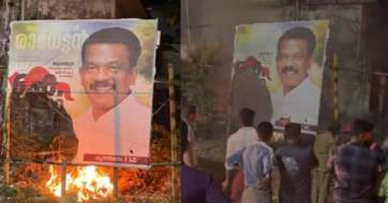 അതേസമയം യൂത്ത് കോൺഗ്രസ് പ്രവർത്തകരാണ് സംഭവത്തിന് പിന്നിലെന്നാണ് എൽ ഡി എഫ് ആരോപിക്കുന്നത്. ഇന്നലെ രാത്രി 12 മണിയോടെയായിരുന്നു സംഭവം ഉണ്ടായത്.