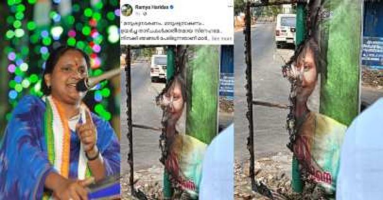 തന്റെ പാതി കരിഞ്ഞ ഫ്ലക്സിന്റെ ചിത്രം പങ്കുവെച്ച് ആലത്തൂരിലെ യുഡിഎഫ് സ്ഥാനാർഥി രമ്യ ഹരിദാസ് രംഗത്ത്. മുരുകൻ കാട്ടാക്കടയുടെ വരികൾ എഴുതിയാണ് രമ്യ ചിത്രത്തിനൊപ്പം കുറിച്ചത്. ” മനുഷ്യനാകണം. മനുഷ്യനാകണം. ഉയർച്ച താഴ്ചകൾക്കതീതമായ സ്നേഹമേ.നിനക്ക് ഞങ്ങൾ പേരിടുന്നതാണ് മാർക്സിസം. പഴയ കാലത്തെ നല്ല കമ്മ്യൂണിസ്റ്റുകളെ ഓർത്തുപോയെന്നുമാണ് രമ്യ സോഷ്യൽ മീഡിയയിൽ കുറിച്ചത്.