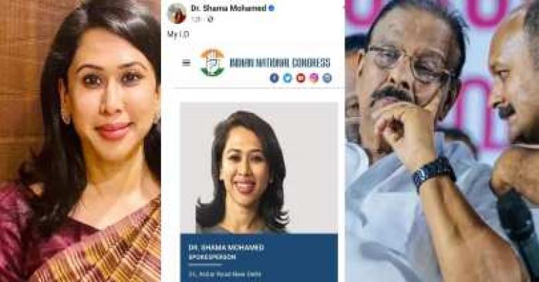 മൈ ഐ.ഡി എന്ന അടിക്കുറിപ്പോടെയാണ് ഷമ സോഷ്യൽ മീഡിയയിൽ കോൺഗ്രസ് വെബ്സൈറ്റിലെ സ്ക്രീൻഷോട്ട് പോസ്റ്റ് ചെയ്തത്. ഡോ. ഷമ മുഹമ്മദ്, വക്താവ് എന്നതിനൊപ്പം ചിത്രവും ഡൽഹിയിലെ വിലാസം ഉൾപ്പെടെ പോസ്റ്റിൽ ചേർത്തിട്ടുണ്ട്.