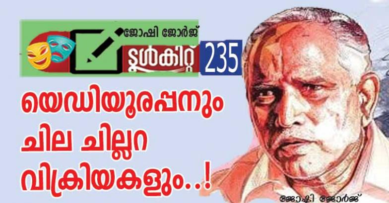 യാരടൈ ഈ യഡിയൂരപ്പൻ...? എട്ട് വട്ടം നിയമസഭായിലമർന്നിരുന്നവൻ. നാല് വട്ടം മുഖ്യമന്ത്രിക്കസേരയിലും മൂന്ന് വട്ടം നിയമസഭയിലെ പ്രതിപക്ഷ നേതാവിന്റെ ഇരിപ്പടത്തിലും ഇരുന്നിരുന്നു തഴമ്പിച്ചവൻ. ഒരു വട്ടം വീതം ലോക്സഭയിലും നിയമസഭ കൗൺസിലിലും ചാരിക്കിടന്നും ചാഞ്ചാടി നടന്നും ഭരിച്ചുതിമിർത്തവൻ. അതേ, കർണാടകയിൽനിന്നുള്ള മുതിർന്നുകുതിർന്ന ബി.ജെ.പി നേതാവാണ് യഡിയൂരപ്പനെന്ന പുമാൻ നരനാരായണൻ.